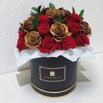Roses rouges et dorées de luxe dans une élégante boîte à chapeau noire