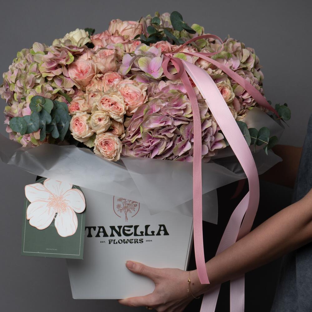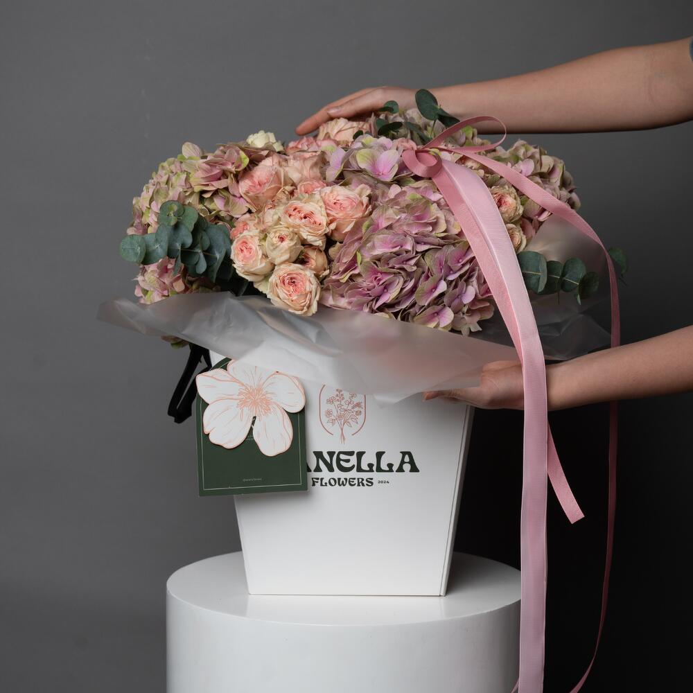 Spray rose - 20 pce Hydrangea - 10 pce eucalyptus - 1 pce