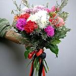 Pink rose - 5 pce Chrysanthème blanc - 4 pce œillet rouge - 5 pce chrysanthème violet - 2 pce rose bébé - 2 pce limonium - 10 pce rose orange - 5 pce