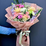 Beauté Mélangée – Bouquet Pastel Élégant avec Gérbera, Roses Plus