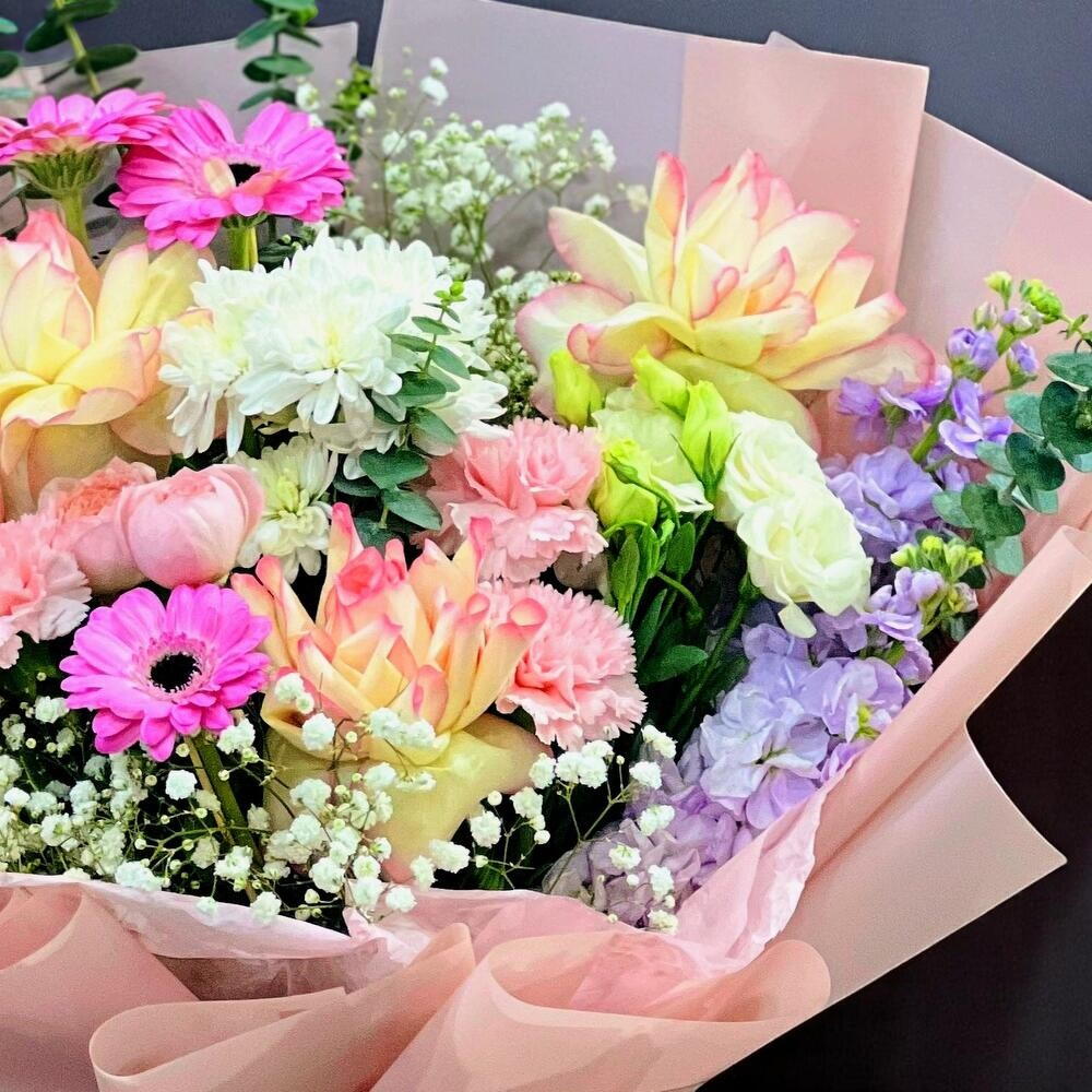 Lumineux, gracieux et merveilleusement expressif, notre bouquet Beauté Mixte est un luxueux mélange de fleurs de première qualité dans une charmante palette pastel. Conçu pour les moments qui méritent une touche d'élégance, cet arrangement est composé d'une sélection soignée de gerberas, de roses miroitantes, d'œillets et bien plus encore, créant une harmonie florale romantique et rafraîchissante qui captive sous tous les angles. Que vous souhaitiez un anniversaire, célébrer un événement important ou simplement partager un moment de joie florale, ce bouquet est le moyen idéal de l'exprimer avec élégance. Conseils d'entretien : Couper les tiges en biais et les placer dans de l'eau propre à température ambiante dès que possible. Conserver le bouquet dans un endroit frais, à l'abri de la lumière directe du soleil et des sources de chaleur. Changer l'eau tous les deux jours et retirer les pétales fanés pour prolonger la fraîcheur.