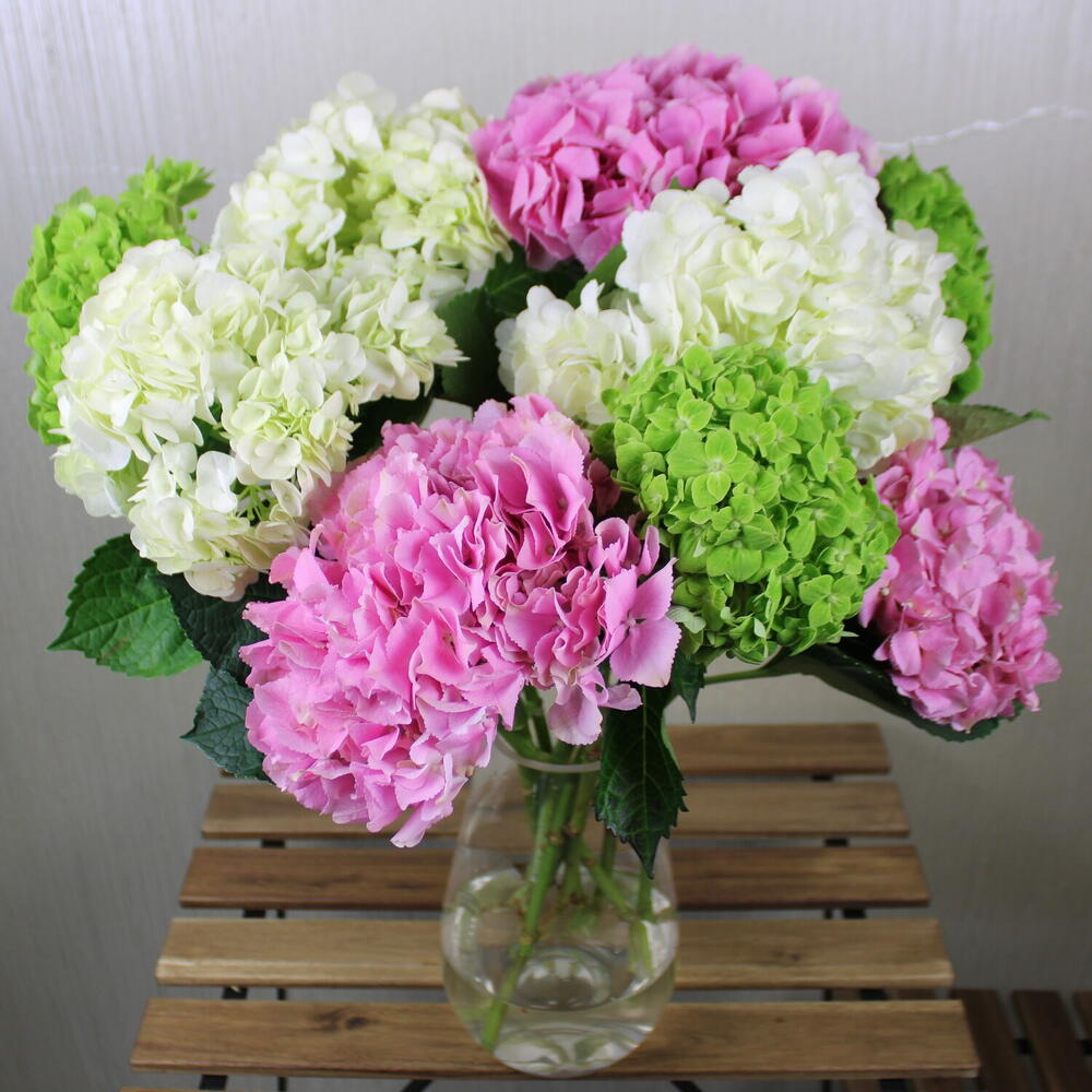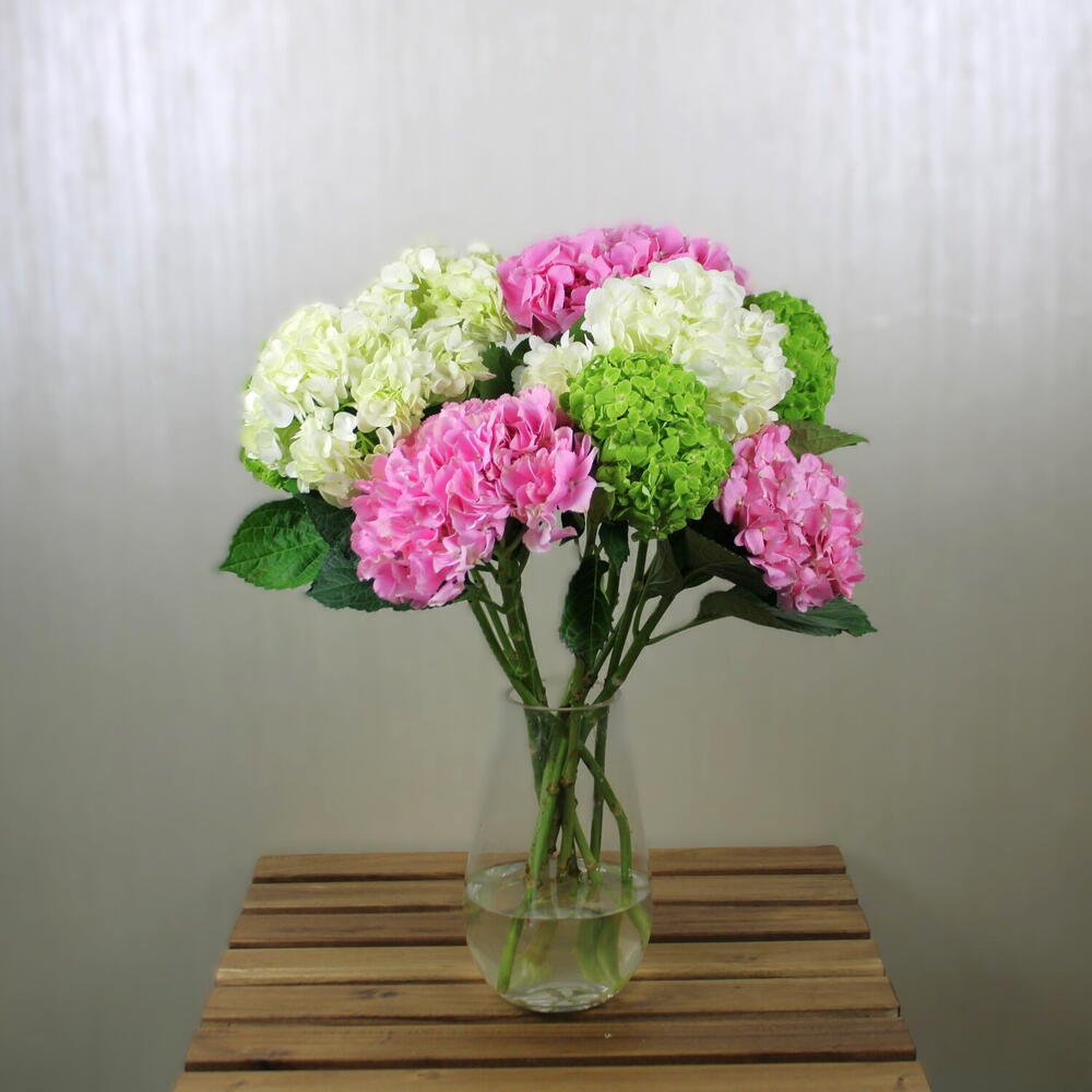 Vase d'hortensias mélangés