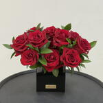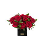 tige de ruscus - 8 pce boîte en acrylique 15x15 - 1 pce ever red roses - 18 pce