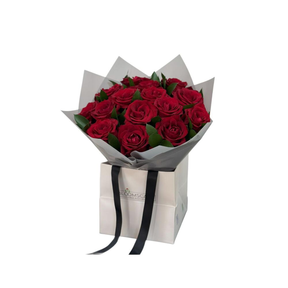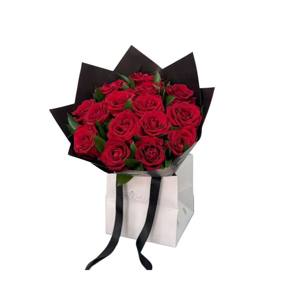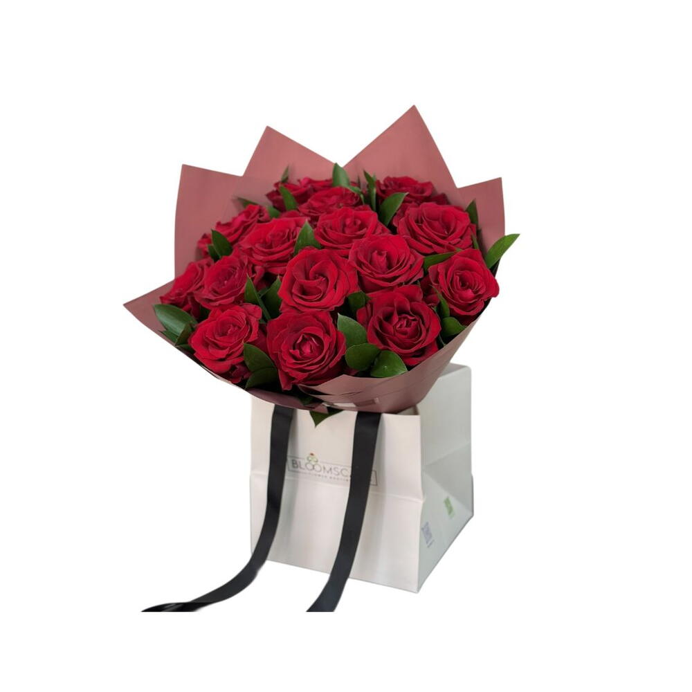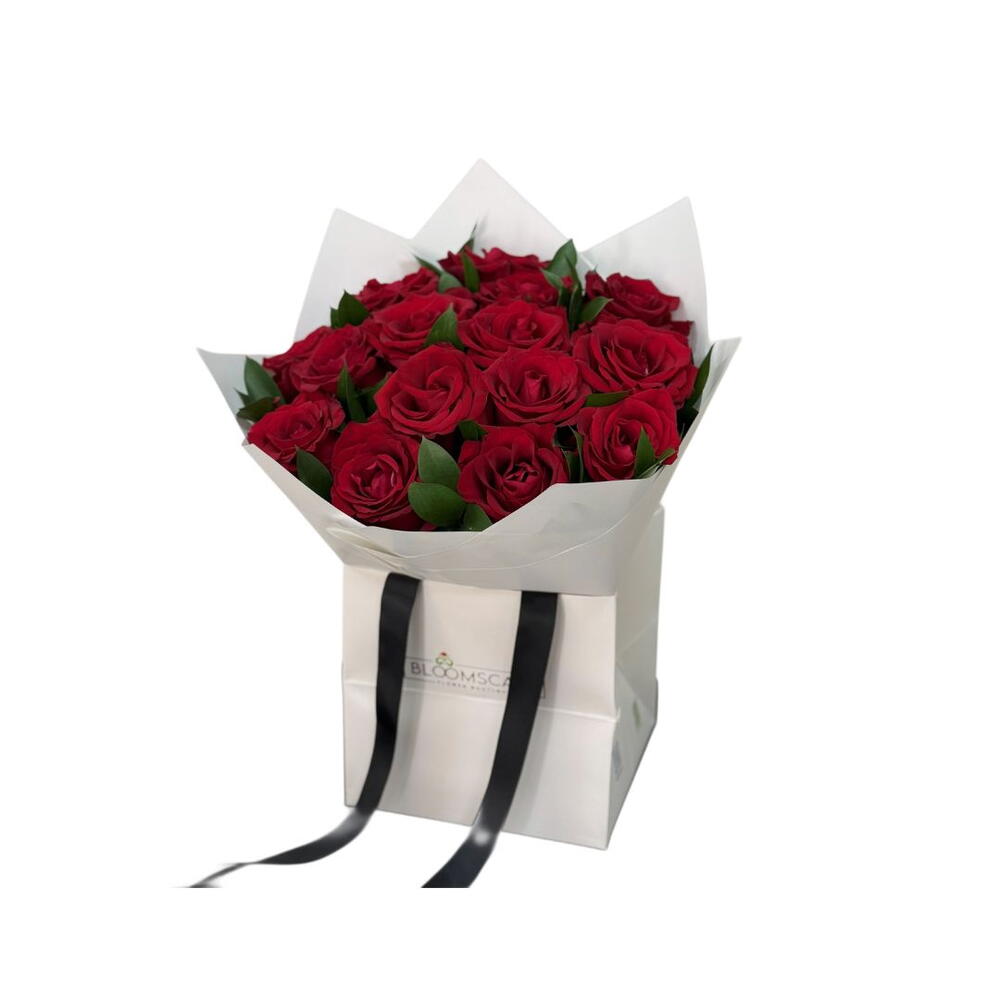 tige de ruscus - 15 pce rose toujours rouge - 15 pce bloomscape sac en papier - 1 pce