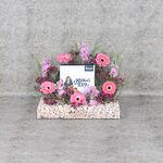 pink Gerbera - 5 pce matthiola rose - 5 pce lepidium - 3 pce fleurs de cire violettes - 3 pce grand plateau en acrylique - 1 pce chocolats de sweecho - 16 pce