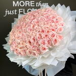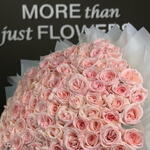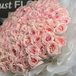 Un arrangement à couper le souffle de roses Ohara de qualité supérieure en rose poudré, élégamment enveloppé dans des couches de papier blanc délicat et noué d'un ruban de satin. Ce grand bouquet met en valeur les pétales luxuriants et épanouis ainsi que le parfum délicat qui font des roses Ohara un symbole intemporel de grâce et de romance. Parfait pour les occasions spéciales, les anniversaires ou pour exprimer des sentiments sincères de la manière la plus élégante.
