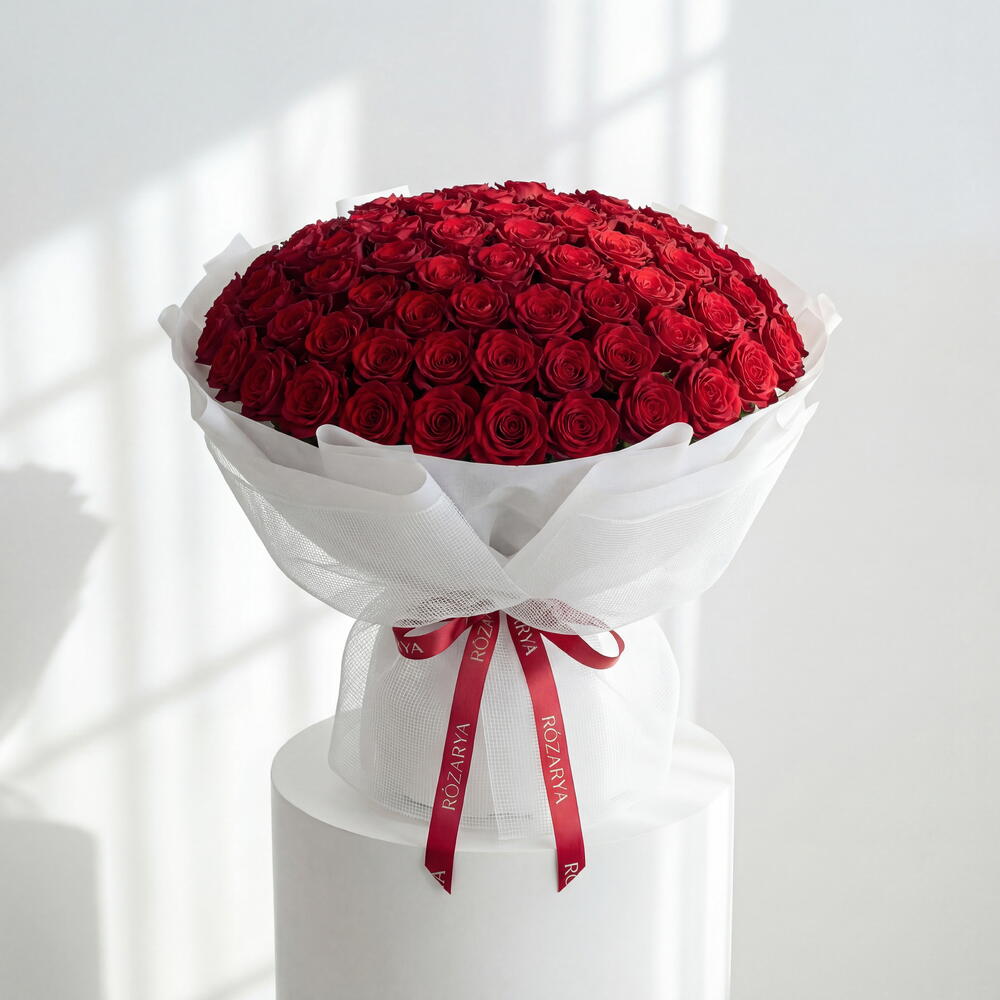 roses rouges premium - 101 pce emballage en filet blanc design - 1 pce