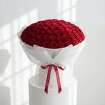 Une composition parfaitement soignée de fleurs d'un rouge profond, enveloppée dans une élégante résille blanche pour laisser la beauté intemporelle des roses parler d'elles-mêmes. • Veuillez noter : Étant donné que les fleurs sont des produits naturels, les couleurs réelles peuvent légèrement différer des images numériques en raison des variations saisonnières et des conditions d'éclairage. Nous garantissons que le style général, la qualité haut de gamme ainsi que la fraîcheur de votre composition seront toujours préservés.