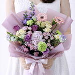 Le bouquet Pastel Luxury Bloom est un bouquet doux et élégant aux douces nuances pastel. Emballé avec soin dans un luxueux papier rose poudré orné d'un ruban de satin, il est idéal pour les anniversaires, les fêtes, les félicitations, les naissances ou simplement pour faire plaisir. Roses simples : 9 (blanches et violettes) Roses miniatures / roses branchues : 5 tiges (roses) Hortensia : 1 tige Gerberas : 2 tiges Giroflée : 1 tige (violette) Lisianthus / Eustoma : 2 tiges (blanches et lilas) Œillets : 2 tiges (vertes) Note d'achat : Impression de carte de vœux offerte pour toute commande. (Veuillez saisir votre message lors de la validation de votre commande.) Changement de couleur des fleurs : Vous pouvez demander à modifier les couleurs des fleurs selon vos préférences. Sous réserve de disponibilité et pouvant varier en fonction des stocks du jour. Options supplémentaires : Vous pouvez ajouter des articles supplémentaires tels que : Ballons, lettres, chiffres, chocolats, parfums et articles cadeaux (en option). Garantie fraîcheur : Nous utilisons toujours des fleurs fraîches et assurons une qualité de composition optimale.