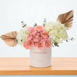 Présenté dans une boîte ronde blanche Signature ZUVEES, gravée du message «Félicitations», cet arrangement floral exprime à la fois la fierté du moment présent et la promesse d'un avenir radieux.