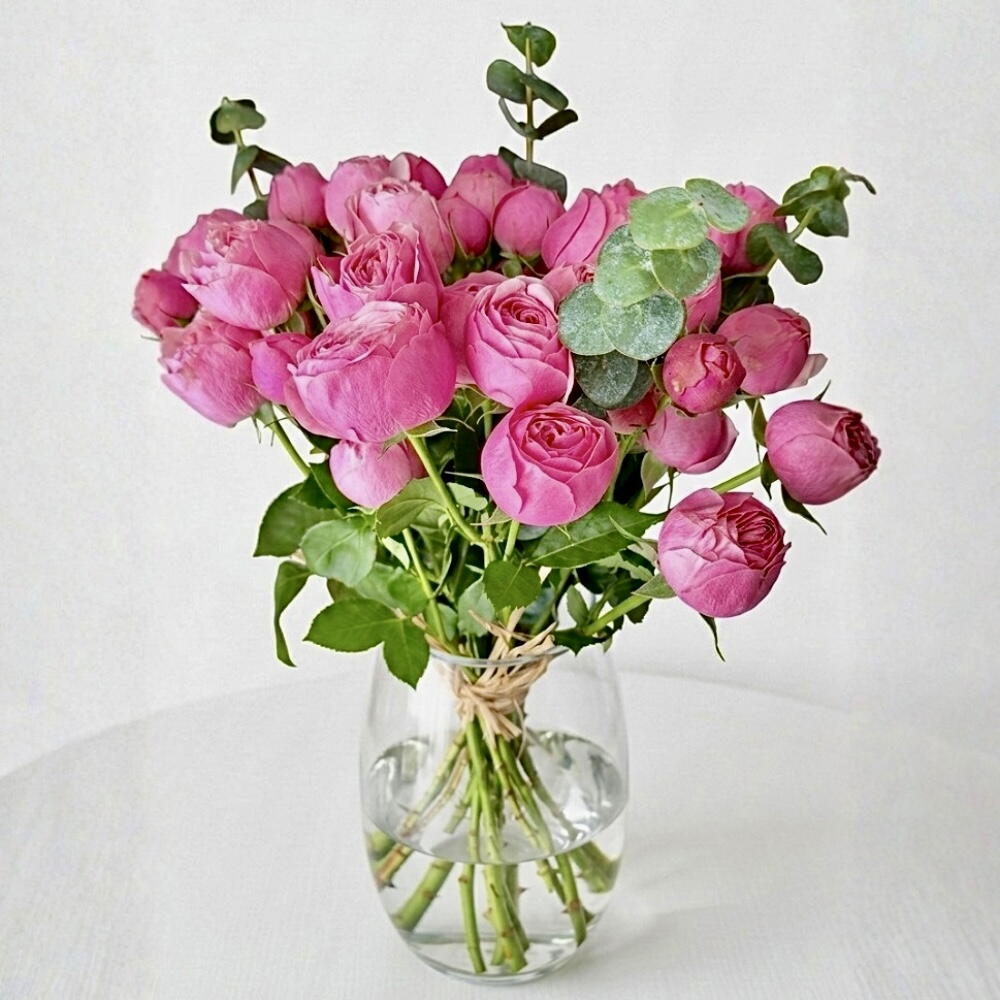 Onze pivoines roses disposées dans un vase élégant, un cadeau floral prêt à offrir pour toute occasion spéciale. « Élégantes pivoines roses présentées dans un vase en verre raffiné. Symbole de romance et de prospérité, cette composition luxueuse est idéale pour les anniversaires, les fêtes et les cadeaux de qualité. »