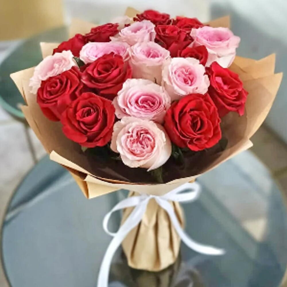 Charmant, romantique et empreint de tendresse, ce bouquet de roses rouges et rose tendre est idéal pour dire « Je t'aime », « Merci » ou tout simplement « Tu es spéciale ». L'emballage en papier kraft doux et le ruban blanc créent une élégance chaleureuse et rustique qui s'harmonise avec les tons riches des fleurs. Que ce soit pour un anniversaire, une fête ou tout simplement pour le plaisir, ce bouquet saura conquérir les cœurs. Pour préserver la fraîcheur de vos roses, coupez les tiges en biais et plongez-les dans de l'eau propre dès que possible. Changez l'eau tous les 1 à 2 jours et conservez les fleurs à l'abri de la chaleur directe ou du soleil. Avec un peu d'amour et de soins, ce bouquet continuera de répandre joie et beauté.