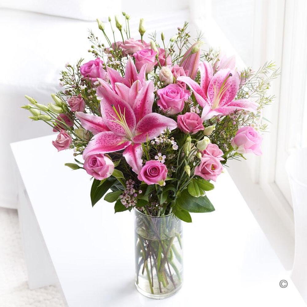 Fleurs en cire - 5 pce Lys - 3 pce vase en verre - 1 pce roses - 10 pce mini-roses - 5 pce