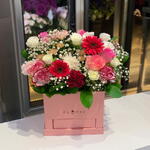 Ruscus - 10 pce Spray rose - 5 pce Chrysanthemum - 1 pce Gerbera - 2 pce carnation - 3 pce gypse - 4 pce roses - 6 pce
