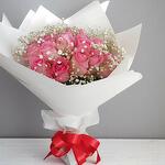 Pink rose - 20 pce gipsophila - 6 pce