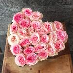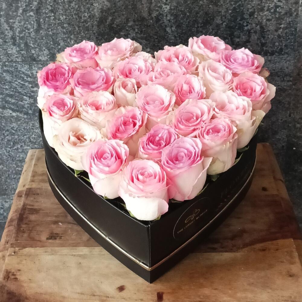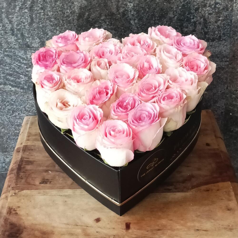 Pink rose - 25 pce boîte noire en forme de cœur - 1 pce