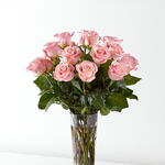 Un arrangement raffiné et sophistiqué de roses roses, mettant en valeur leur beauté naturelle et leurs pétales délicats.
