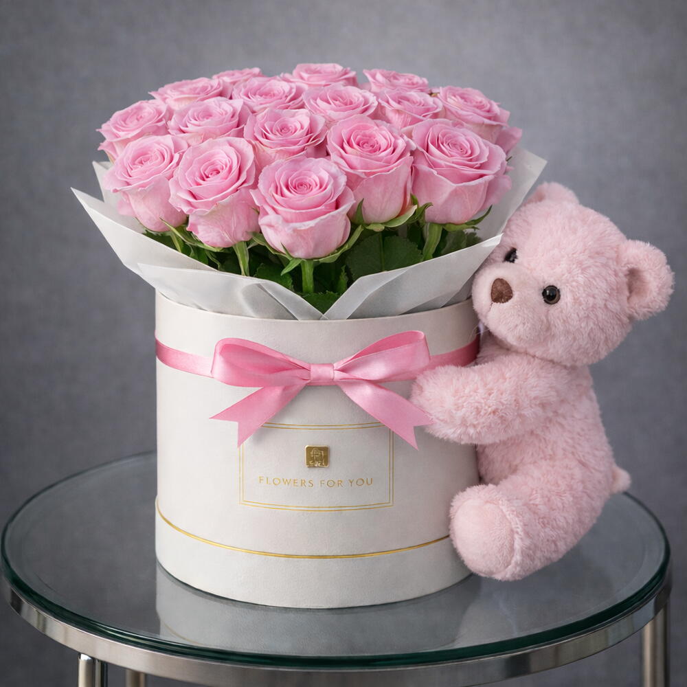 Satin ribbon - 1 pce ours en peluche - 1 pce pink roses - 15 pce