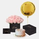 Faites plaisir à vos proches avec notre coffret de roses roses en boîte avec gâteau, réunissant des fleurs élégantes et un délicieux gâteau — parfait pour les anniversaires, les noces ou toute célébration.