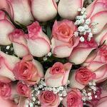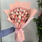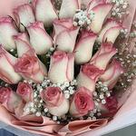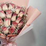 Ribbon - 1 pce Pink rose - 21 pce Wrapping - 5 pce gypsophile - 4 pce