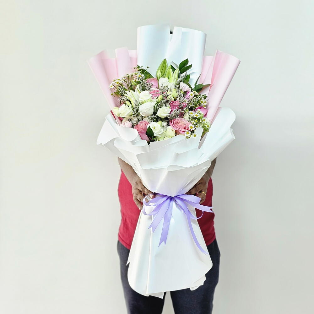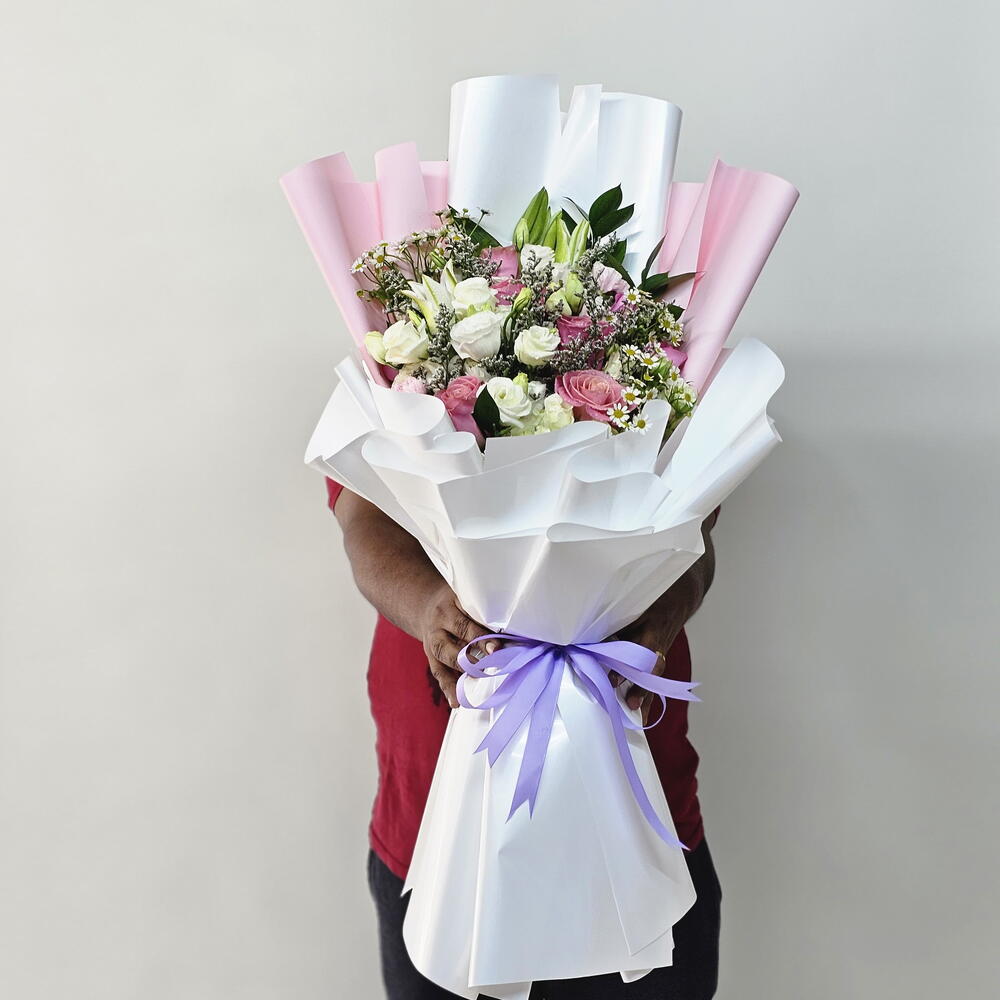 Montrez-lui combien elle compte pour vous avec notre ravissant bouquet de fleurs mélangées, un délicat mélange de fleurs conçu pour captiver et charmer. Cette magnifique composition est composée d'une multitude de fleurs éclatantes, soigneusement sélectionnées pour exprimer amour, beauté et admiration. Emballé dans un élégant papier rose et blanc, ce bouquet offre un équilibre parfait entre romantisme et sophistication. Le rose tendre apporte une touche de douceur, tandis que le blanc apporte une touche de fraîcheur et d'intemporalité, faisant de ce bouquet un cadeau idéal en toute occasion. Que vous célébriez un événement important ou que vous souhaitiez simplement lui faire plaisir, ce bouquet est l'expression parfaite de votre affection et de votre reconnaissance. Idéal pour : les anniversaires, les fêtes de naissance, les gestes romantiques ou pour une surprise spontanée à la personne qui illumine votre vie.