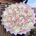 Spray rose - 20 pce Hydrangea - 10 pce Lisianthus - 20 pce dianthus - 25 pce matthiola - 20 pce lisianthus white - 20 pce peony spray rose - 20 pce roses - 20 pce