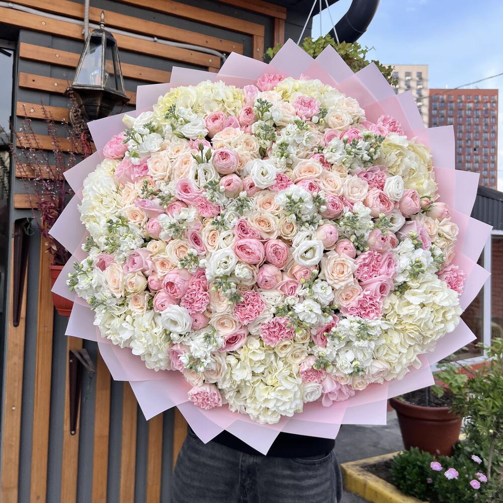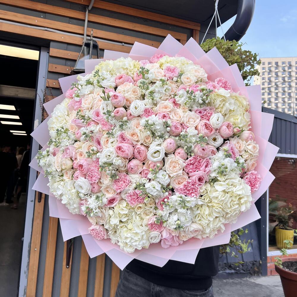 Spray rose - 20 pce Hydrangea - 10 pce Lisianthus - 20 pce dianthus - 25 pce matthiola - 20 pce lisianthus white - 20 pce peony spray rose - 20 pce roses - 20 pce