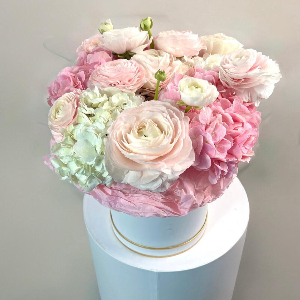 hydrangea pink - 3 pce renoncule rose - 10 pce hortensia blanc - 2 pce