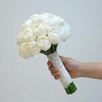 Ce bouquet de mariage élégant incarne la pureté, la tendresse et un romantisme intemporel. Confectionné avec des fleurs blanches luxuriantes, il présente une forme ronde classique qui paraît raffinée et harmonieuse dans les mains de la mariée. Les pétales doux et le ton blanc pur complètent merveilleusement toute robe de mariée, des styles minimalistes aux plus luxueux. Ce bouquet est parfait pour les cérémonies de mariage, les séances photo et les moments symboliques empreints d'amour. Pour conserver le bouquet frais, placez les tiges dans de l'eau propre et fraîche dès que possible. Renouvelez l'eau quotidiennement et recoupez légèrement les tiges en biais. Conservez le bouquet dans un endroit frais, à l'écart de la lumière directe du soleil, des courants d'air et des sources de chaleur.