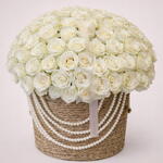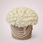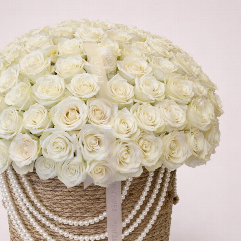 Basket - 1 pce roses blanches - 150 pce brins de perles - 4 pce