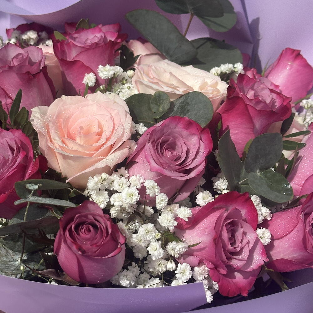 "Bouquet Passion Pourpre 15 roses violettes 10 roses roses