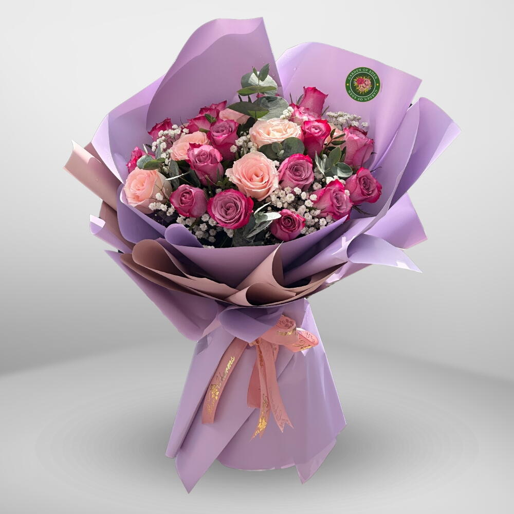 Adoptez l'élégance, le mystère et l'affection avec le bouquet Purple Passion — un mélange saisissant d'émotions riches et de beauté gracieuse. Comprenant: – 💜 15 roses d'un pourpre profond, symbolisant l'enchantement, l'admiration et la royauté – 🌸 10 roses rose pâle, exprimant l'amour, la reconnaissance et une tendre affection – 🎀 Enveloppé dans un luxueux papier mat violet, noué avec style et grâce Ce bouquet parle le langage du cœur — mariant sans effort sophistication et chaleur. Idéal pour des gestes romantiques, des anniversaires, des fêtes d'anniversaire ou simplement pour surprendre une personne spéciale, c'est un cadeau sincère qui laisse une impression durable. 📦 Commandez maintenant pour une livraison rapide et laissez vos sentiments éclore magnifiquement.