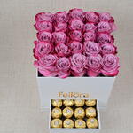 rose violette - 25 pce boîte blanche - 1 pce morceaux de chocolat Ferrero Rocher - 20 pce