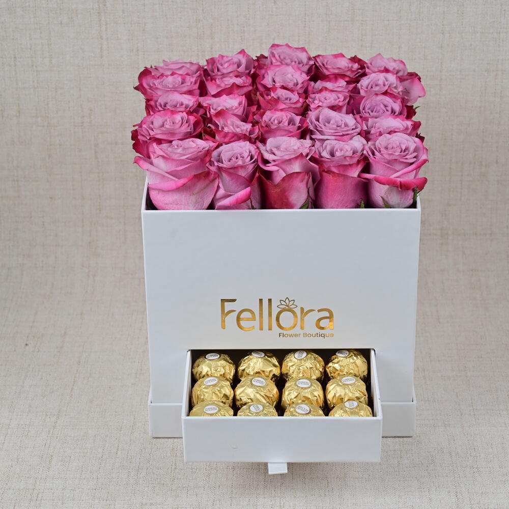 rose violette - 25 pce boîte blanche - 1 pce morceaux de chocolat Ferrero Rocher - 20 pce