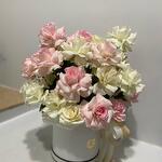 Doux, romantique et empreint de délicatesse, ce bouquet pastel célèbre l'élégance. Le subtil mélange de fleurs rose poudré et blanc crème compose une harmonie parfaite, idéale pour exprimer amour, gratitude ou félicitations sincères. Présenté dans une boîte à chapeau blanche et orné de rubans vaporeux, il rayonne de charme et de sérénité. Placez le bouquet dans un endroit frais et ombragé, à l'abri du soleil direct et des sources de chaleur. Vaporisez-le légèrement d'eau chaque jour pour préserver la fraîcheur et l'éclat des fleurs. Parfait pour les anniversaires, les mariages, les fêtes de naissance ou simplement pour égayer la journée de quelqu'un.