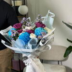 carnation white - 2 pce spray de chrysanthème blanc - 3 pce aster cassandra - 5 pce snowdown teint en bleu - 3 pce chrysanthème andrea violet - 4 pce