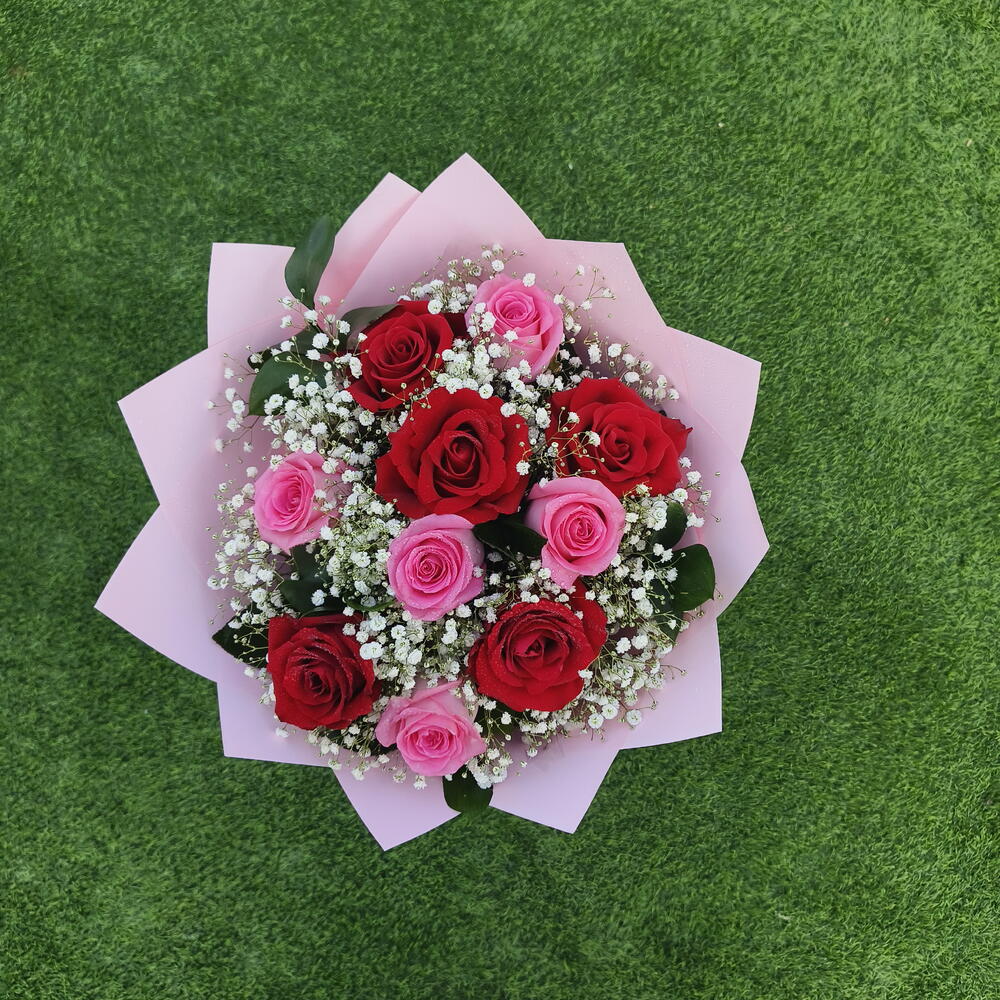 Red rose - 5 pce Gypsophila - 2 pce tiges de roses roses - 5 pce