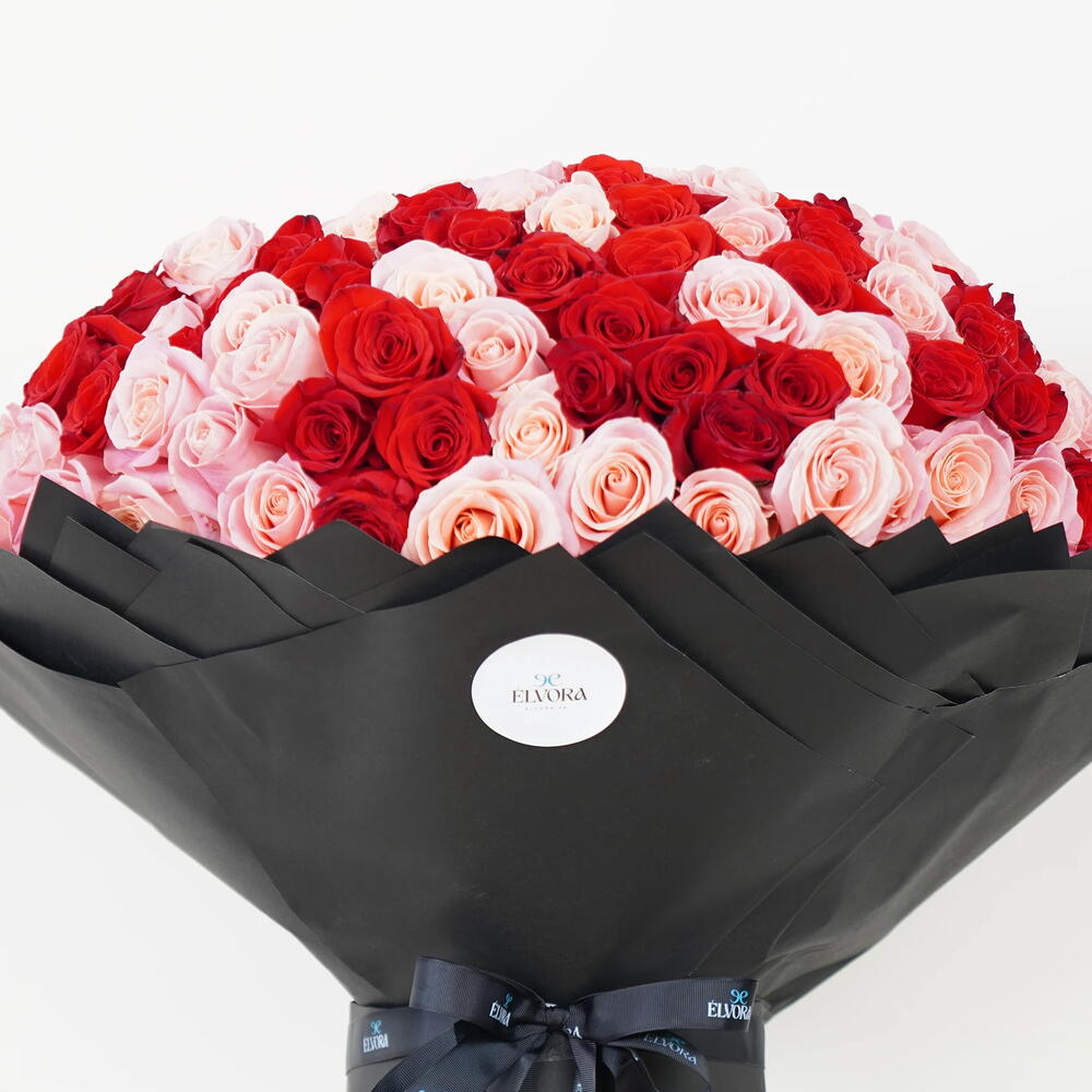 Red and Pink roses Velour Garden Bouquet story behind this piece is about generosity of feeling. It reflects moments when words are not enough, when emotion needs space to exist fully. Designed to be carried, seen, and remembered, this bouquet transforms softness into something unforgettable. It brings grace, intention, and a lasting emotional imprint wherever it appears. Valentine’s Day floral arrangements with modern elegance.