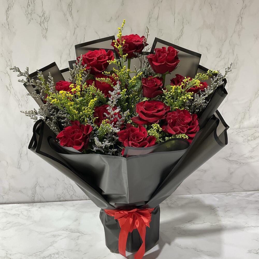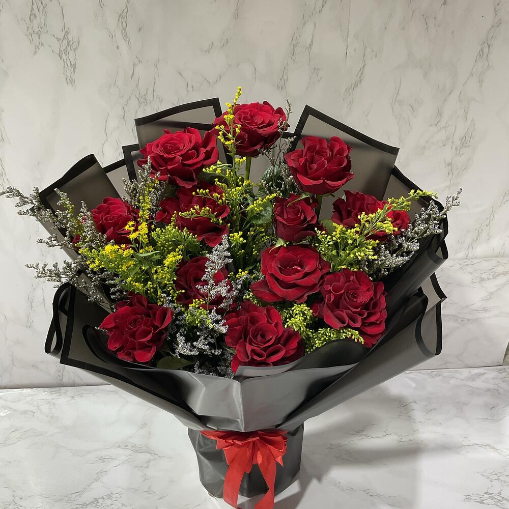 Red rose - 12 pce Solidago - 5 pce paper - 7 pce