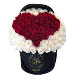 Découvrez le mélange envoûtant d'un arrangement à la fois classique et contemporain avec notre boîte à fleurs. Il contient 50 roses rouges captivantes, symbole d'un amour passionné et 51 roses blanches immaculées, reflétant la pureté et l'innocence. Toutes les fleurs sont joliment nichées dans une boîte noire épurée, apportant une touche d'élégance à l'ensemble. L'harmonie des couleurs et des textures crée une expérience visuelle et émotionnelle inoubliable, en faisant un cadeau idéal pour vos proches.