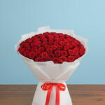 Découvrez l'élégance pure de notre Mono Bouquet, une composition arrangée à la main de 101 magnifiques roses rouges de 60cm, toutes liées par un ruban en satin captivant. Orné de six feuilles d'emballage blanches, ce bouquet est le symbole par excellence du luxe et de l'affection. Son élégance réside dans sa simplicité, ce qui en fait l'expression parfaite d'un amour éternel. Ce bouquet est une véritable pièce maîtresse et restera mémorable pendant des années.