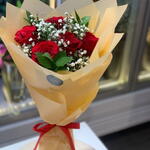Red rose - 5 pce Ruscus - 4 pce gypse - 2 pce