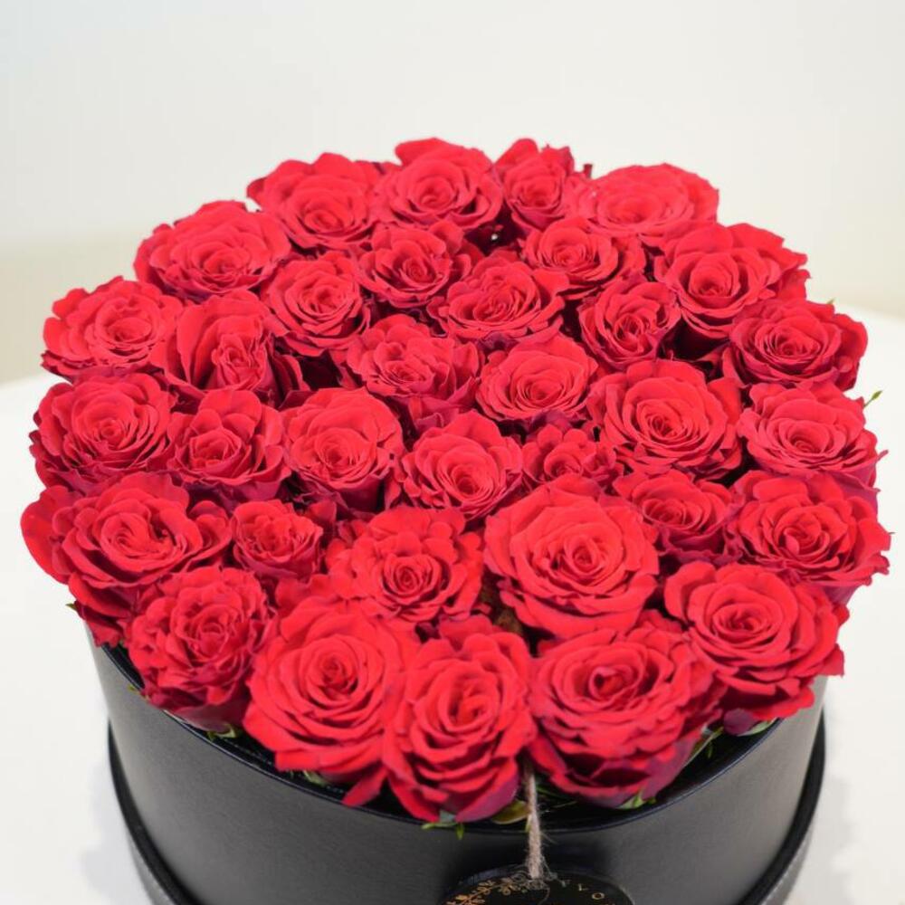 Une boîte spéciale en cuir de fleurs fraîches