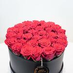 Rose rouge avec boîte noire en lether