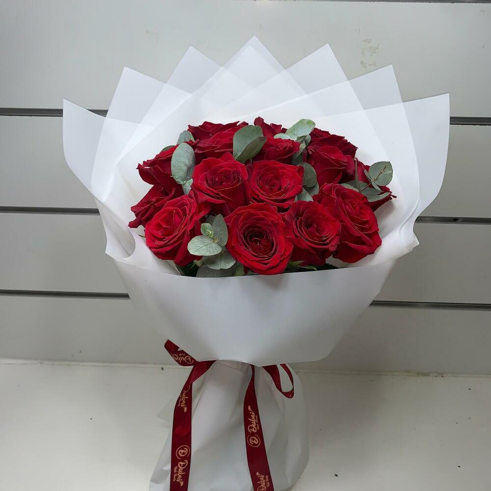 Rose rouge - 15 pièces Eucalyptus - 5 pièces