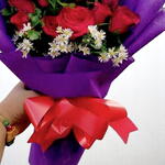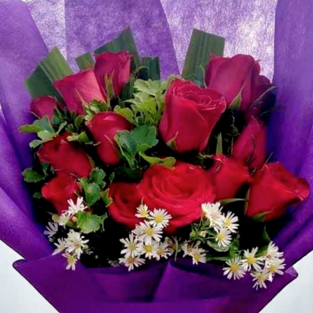Ce bouquet vibrant est une expression audacieuse d'amour et de joie. Composé de roses rouges saisissantes complétées par de délicates fleurs de camomille blanches, il est enveloppé dans un emballage violet luxueux et orné d'un nœud rouge vif pour plus d'élégance. Que ce soit pour un geste romantique, une célébration ou simplement pour égayer la journée de quelqu'un, ce bouquet transmet des émotions sincères avec style. Le contraste vif entre le rouge profond et le blanc éclatant crée un charme intemporel qui ne se démode jamais. Le bouquet est soigneusement arrangé pour conserver fraîcheur et tenue tout au long de votre occasion spéciale. Pour conserver vos fleurs en parfait état, coupez les tiges en biais et placez-les dans de l'eau fraîche et propre, en changeant l'eau tous les deux jours. Éloignez le bouquet de la lumière directe du soleil et des courants d'air pour prolonger sa beauté.