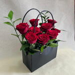 Découvrez la beauté florissante de cette somptueuse composition Fleur dans une boîte. Élégamment conçue, la composition comprend 9 roses rouges captivantes, chacune délicatement cueillie pour sa teinte vibrante. Associée à trois feuilles d'eucalyptus aromatiques qui apportent un contraste agréable et emballée dans un sac exquis, elle constitue une pièce maîtresse irrésistible ou un cadeau attentionné. Cet ensemble extraordinaire saura combler quiconque par sa perfection et sa précision. Caressez vos sens avec cette fleur exotique et laissez-la apporter du charme à vos espaces.