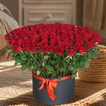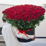 Plongez dans un univers d'élégance et de sophistication avec notre somptueux arrangement de 201 roses rouges, délicatement nichées dans une élégante boîte ronde noire. Rehaussé d'un ruban rouge luxuriant, ce superbe ensemble floral saura captiver par ses teintes riches et ses textures opulentes. Qu'il s'agisse d'une déclaration romantique, d'un cadeau sincère ou simplement d'ajouter une touche de luxe à votre intérieur, ces fleurs garantissent une impression à la fois vibrante et durable. Une façon inoubliable d'exprimer vos sentiments qui en dit long sur votre goût.
