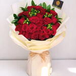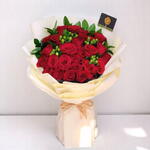 Red rose - 26 pce Ours en peluche - 1 pce hypericum - 4 pce ruscus israël - 5 pce