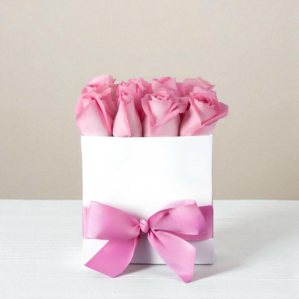 Chocolat - 8 pce boîte blanche - 1 pce roses rose rétro - 25 pce